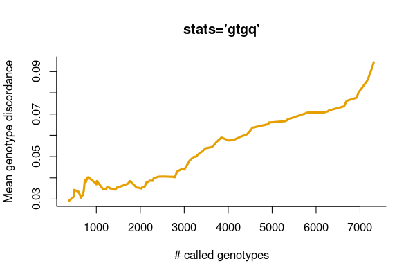 Also, we want to investigate the relationship between the genotype concordance and the call rate ranked by the genotype quality.